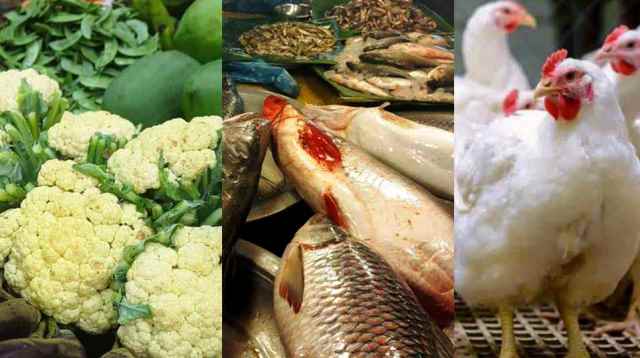 চড়া দামে স্থিতিশীল রয়েছে মুরগির বাজারও। প্রতি কেজি ব্রয়লার মুরগি বিক্রি হচ্ছে ১৭০ টাকায়, আর সোনালি মুরগির জন্য গুনতে হচ্ছে ২৮০ থেকে ৩০০ টাকায়। এ ছাড়া লাল লেয়ার কেজি প্রতি ৩২০ টাকা ও দেশি মুরগি বিক্রি হচ্ছে ৫৫০-৬০০ টাকায়। গরু ও খাসির মাংসের দামও অপরিবর্তিত রয়েছে। প্রতি কেজি গরুর মাংস ৭৬০-৮০০ টাকা, খাসির মাংস ১ হাজার ২০০ টাকা ও ছাগলের মাংস ১ হাজার ১০০ টাকায় বিক্রি হচ্ছে।