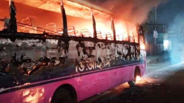গাজীপুরে দাঁড়িয়ে থাকা বাসে দুর্বৃত্তের আগুন