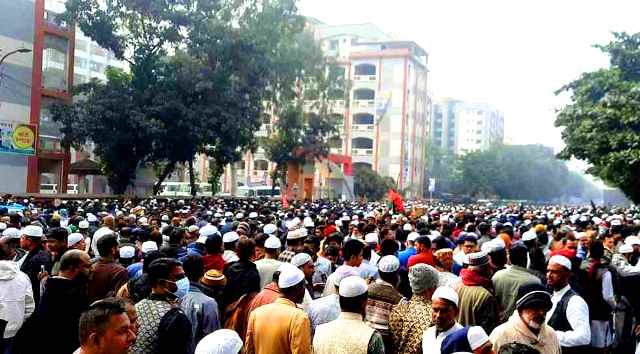 সংসদ এলাকায় জায়গা না পেয়ে বিভিন্ন সড়কে হাজারো মানুষ