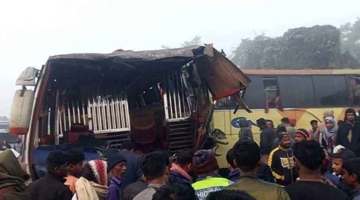 পুলিশ জানিয়েছে, সিলেট থেকে ঢাকাগামী এনা পরিবহন ও ইউনিক পরিবহনের একটি বাসের সঙ্গে গাইবান্ধা থেকে সিলেটগামী শ্যামলী পরিবহনের বাসের মুখোমুখি সংঘর্ষ হয়। সংঘর্ষের তীব্রতায় ঘটনাস্থলেই দুই জন প্রাণ হারান।