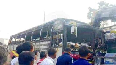 গভীর রাতে বাসে আগুন, ভেতরেই পুড়ে মারা গেলেন চালক